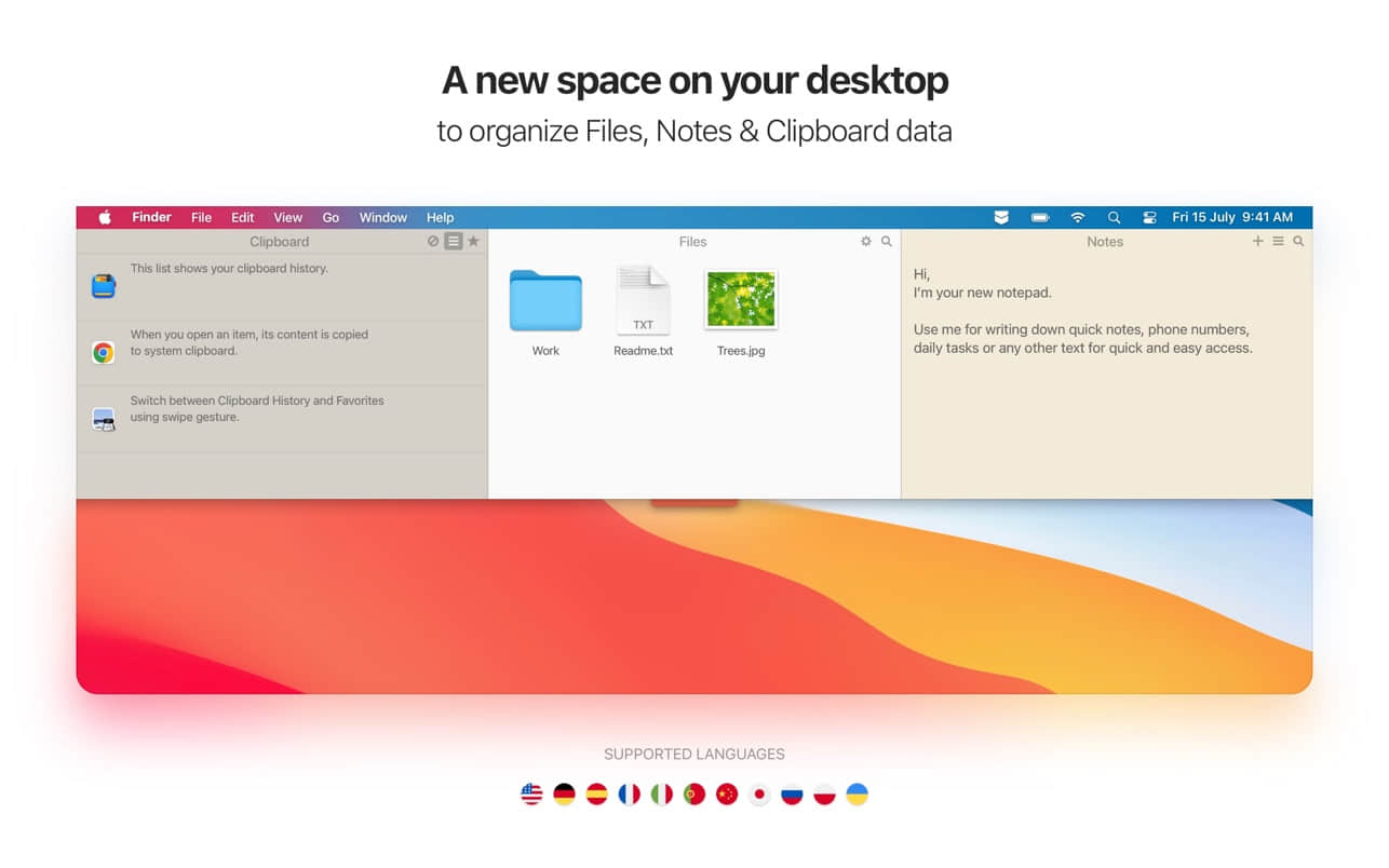 Unclutter 尤其适合需要频繁处理文本和文件的中重度用户。例如撰稿人可借助剪贴板历史快速复用多个文本片段,设计师可将临时素材拖入暂存区快速取用,而无需在 Finder 中反复切换。其呼出方式与 macOS 通知中心类似,但完全独立运行,不会产生干扰。