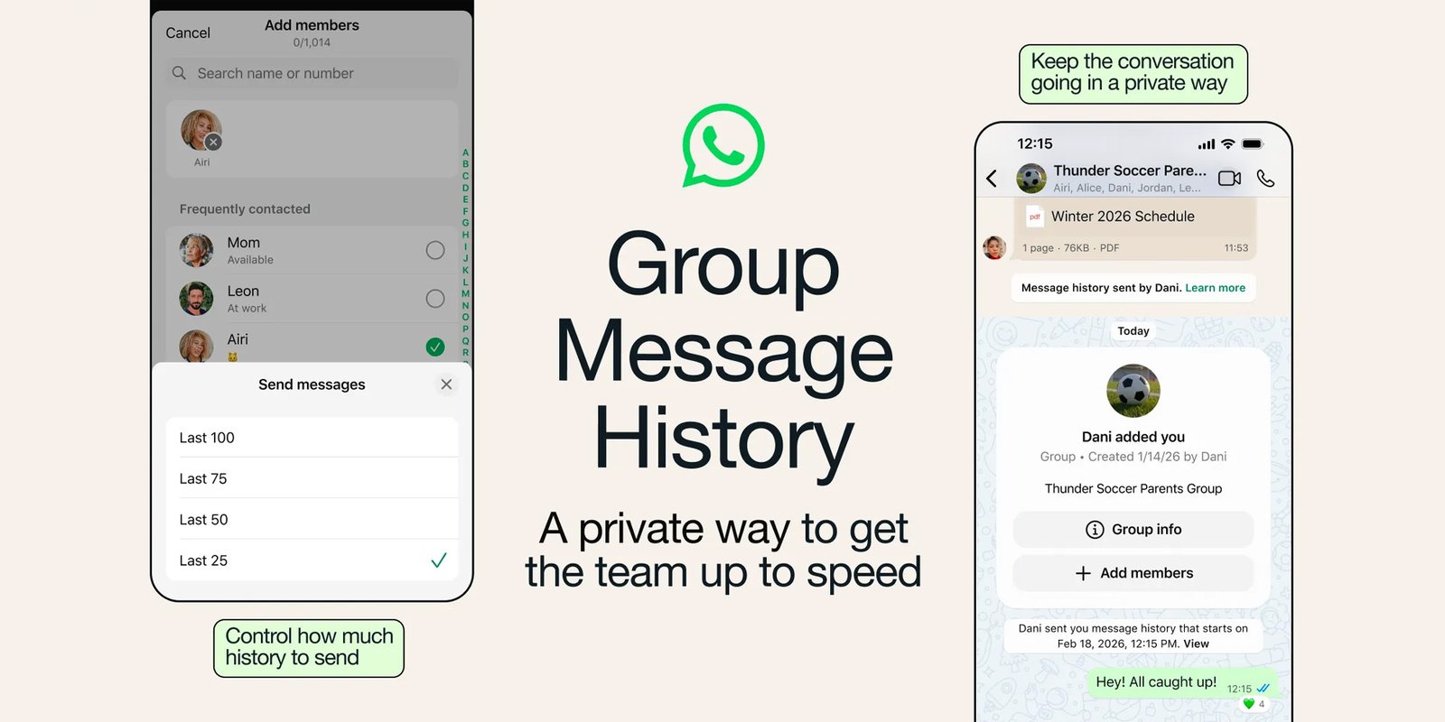 当你将新成员加入群聊时,可以选择向TA发送最近的群消息——可选范围从25条到最多100条。这样设计既简单高效,新成员只需快速阅读最近最相关的上下文,整个群聊也能清楚看到已分享的内容。[…]