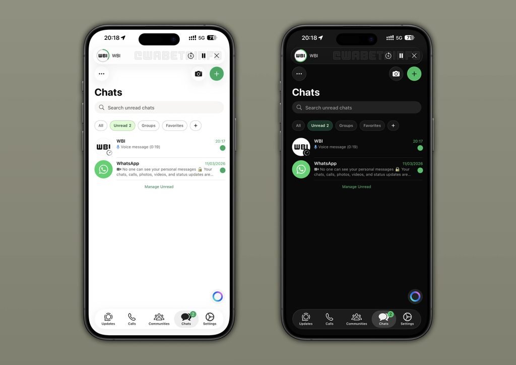 去年十月,WABetaInfo 曾经报道 WhatsApp 开始小范围测试新界面,采用了苹果的 Liquid Glass 视觉风格。