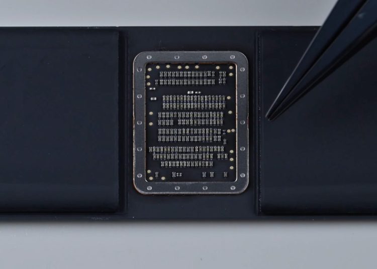 整个过程可一点都不轻松。他先把主板拆下来,露出内部结构,然后把原装的 256GB NAND 芯片拆焊掉,清理干净焊盘,再把新的 1TB 芯片焊上去。